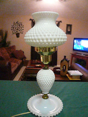 VTG TABLE ELECTRIC LAMP LIGHT WHITE MILK GLASS HOBNAIL