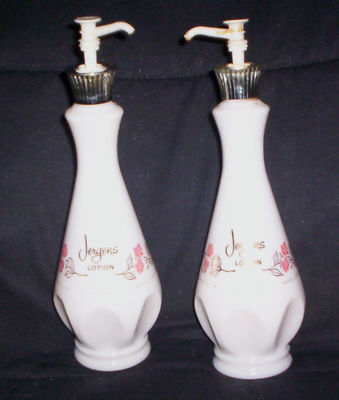 2 LOT Vintage Jergens Lotion Milkglass Dispenser Bottle