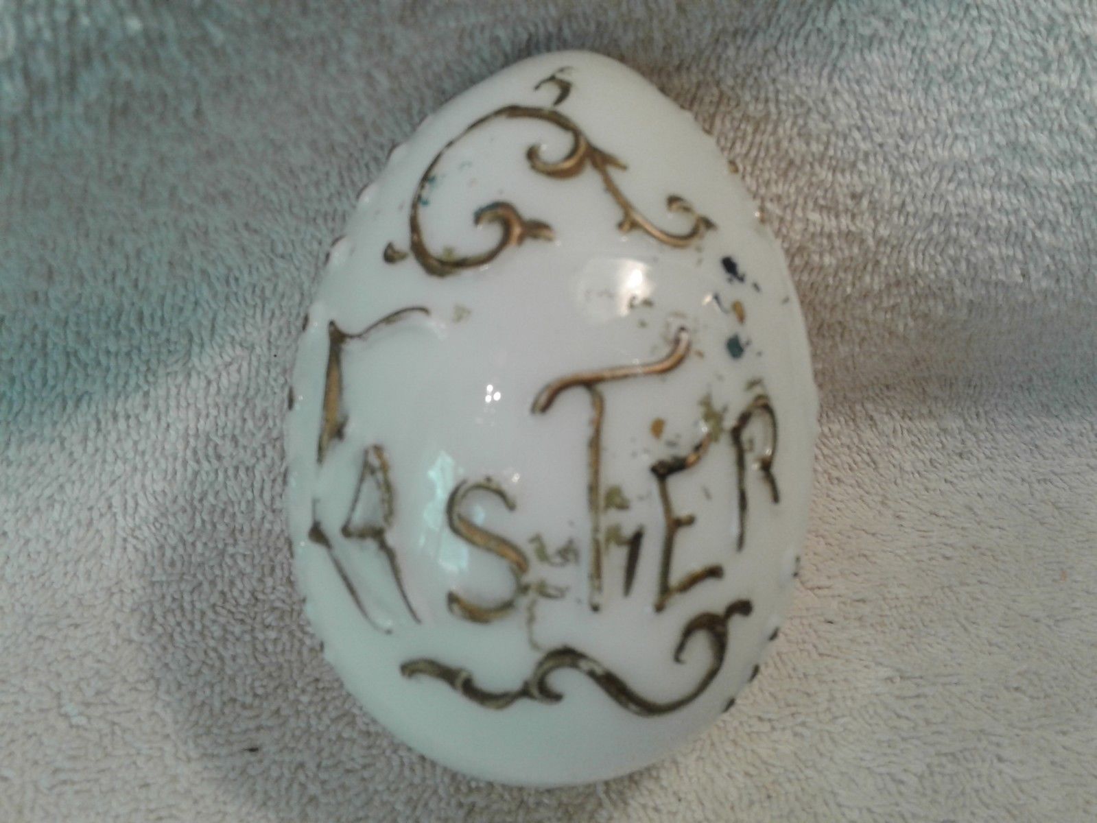 Title (ebay affiliate link): Antique Hand Blown Molded Milk Glass Easter Egg with Greeting Victorian Embossed