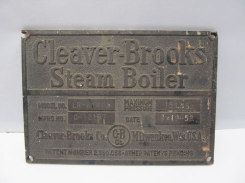 Cleaver Brooks Metal Brass Sign 1953 Steam Boiler Plate Plaque WI
