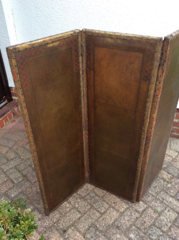 Antique Leather 3 Fold Screen