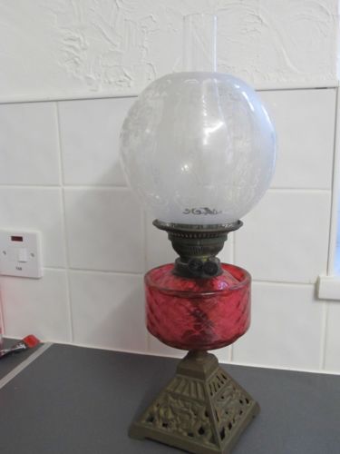 Title (ebay affiliate link): Victorian Duplex Oil Lamp Cranberry Glass Genuine Etched Shade