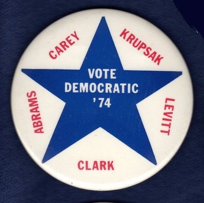 NEW YORK 1974--CAREY KRUPSAK RAMSEY CLARK ABRAMS LEVITT POLITICAL PINBACK BUTTON