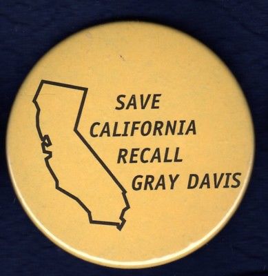 Title (ebay affiliate link): RECALL GRAY DAVIS 2003 GOVERNOR CALIFORNIA SCHWARZENEGGER PINBACK BUTTON TAN 2