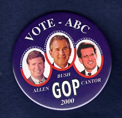 Title (ebay affiliate link): BUSH ALLEN SENATE CANTOR CONGRESS VIRGINIA GOP COATTAIL POLITICAL PINBACK BUTTON