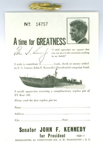 Title (ebay affiliate link): Vintage 1960 Political Campaign PT-109 Pinback &1 John Kennedy Order Form