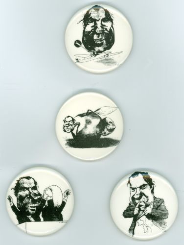 Title (ebay affiliate link): 4 Vintage Anti-Nixon Vietnam War Political Cause David Levine Pinback Buttons