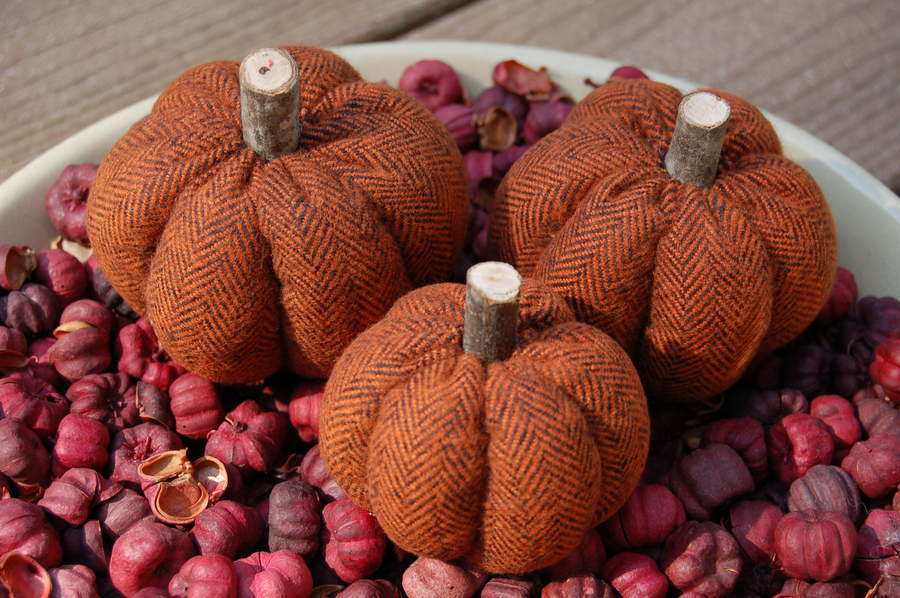 Primitive Fall Halloween Orange Herringbone Flannel Pumpkin Ornies, 3