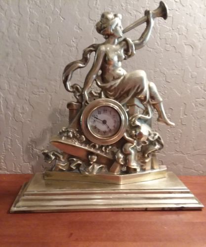 Antique Brass Cast Art Nouveau Lady Cherub Mantel Clock