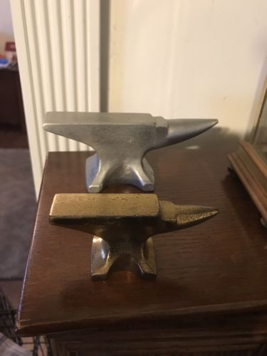 Title (ebay affiliate link): Vintage Miniature Aluminum & Brass Anvil, Lot Of 2