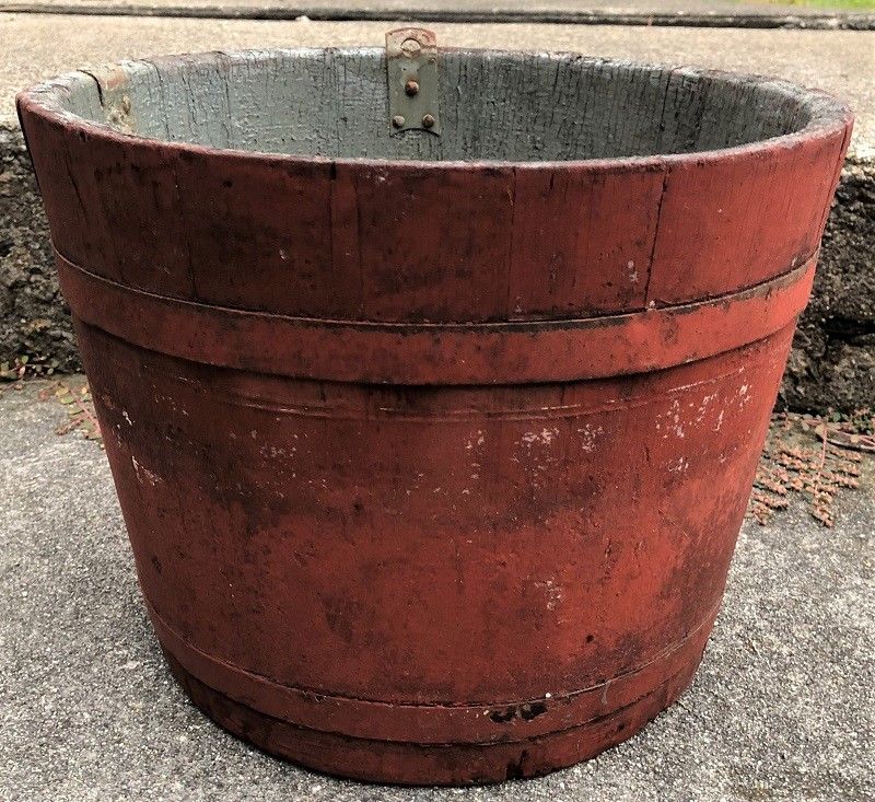 Title (ebay affiliate link): AAFA ANTIQUE 19TH C WOODEN SAP BUCKET IN ORIGINAL RED & GRAY PAINTED SURFACE NR