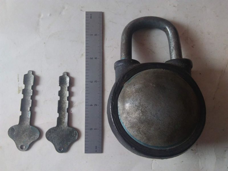 Title (ebay affiliate link): Antique Iron Padlock Unusual HUGE Lock & Key Jail Prison 5 5/8" Walsco 95?