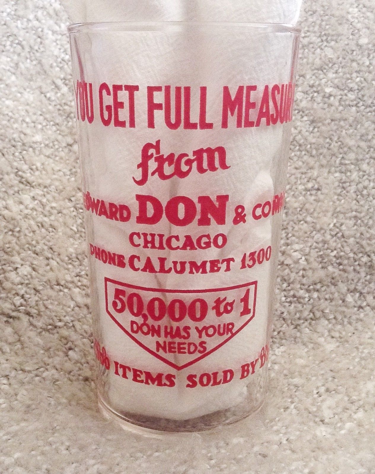 Title (ebay affiliate link): You Get Full Measure - Edward DON & Co Glass Cup - 1950s? - Calumet 1300 Chicago