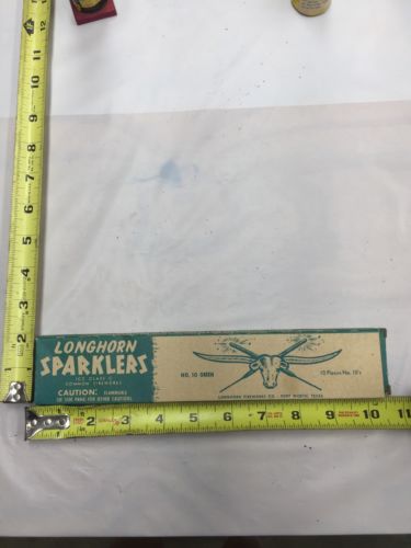 Title (ebay affiliate link): Vintage Longhorn Sparklers Fireworks / Firecrakers Box Green
