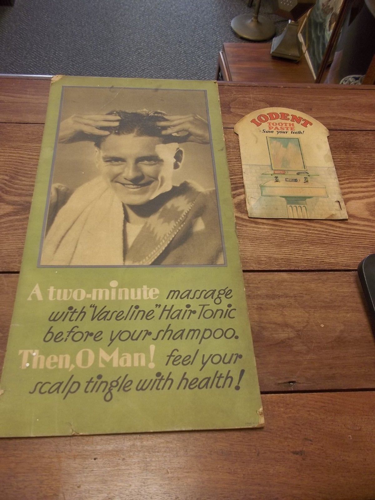 Antique vtg. 1930''s Vaseline Hair Tonic and Iodent Tooth Paste store ad''s