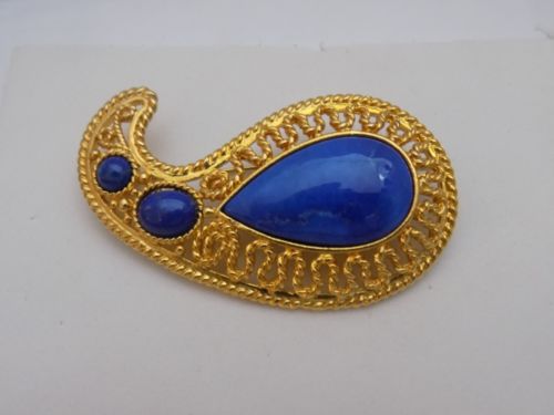 Title (ebay affiliate link): Vintage Gold Tone Blue Stone Cabochon Ornate Paisley Shape Brooch