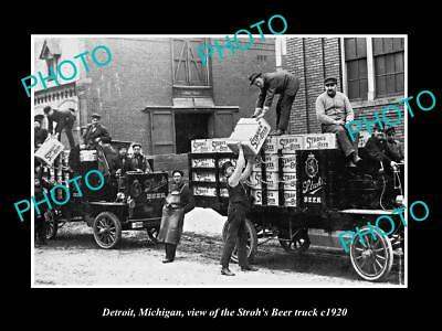 OLD LARGE HISTORIC PHOTO OF DETROIT MICHIGAN, THE STROH BREWERY BEER TRUCK c1920