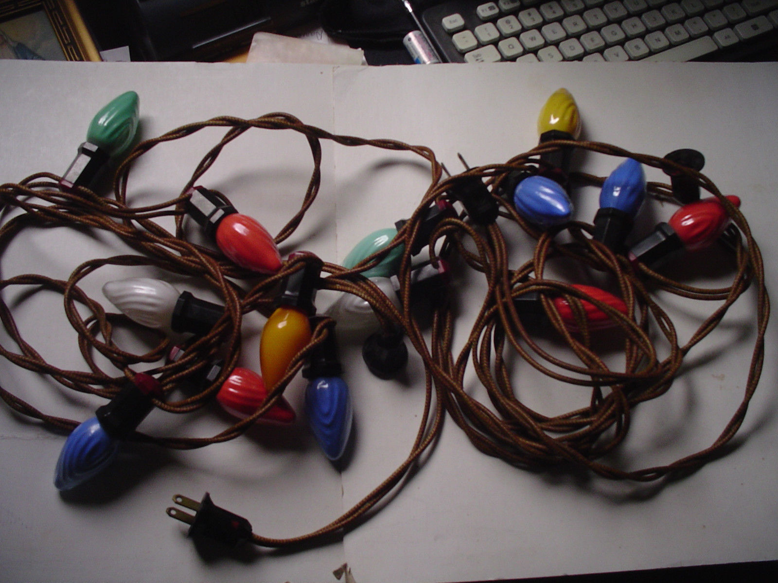 Title (ebay affiliate link): 14 C-9 CHRISTMAS FLAME SWIRL LIGHT BULBS w/CLOTH CORDS. 2 WORKING STRINGS.