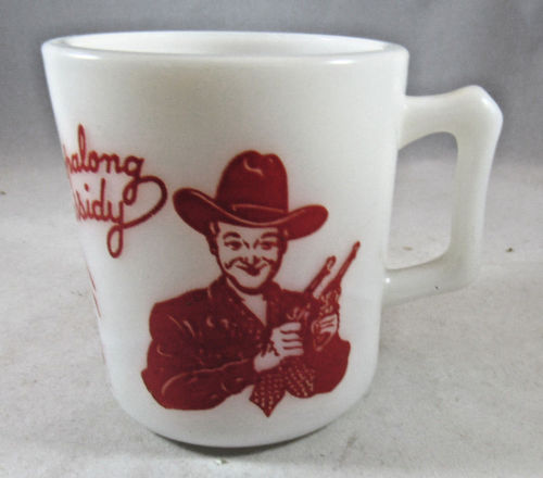 Vintage Hopalong Cassidy Milk Glass Mug Red Print