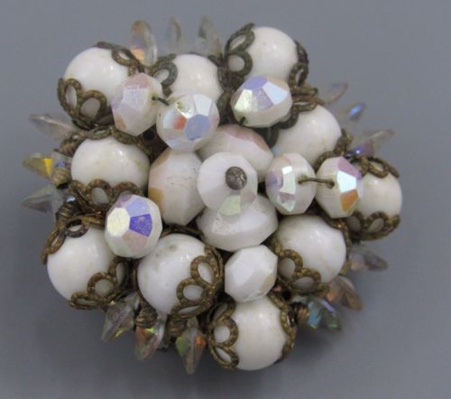 Vintage Jewelry AUSTRIA AB Crystal Milk Glass BROOCH Rhinestone Lot C