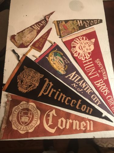 Antique felt pennant lot (7), circus, Cornell, Princeton, Miami, Havana, A.C. NJ