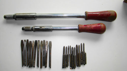 Title (ebay affiliate link): Stanley Yankee Spiral Rachet Screwdrivers No. 131A No. 130A w/ 22 Assorted Bits