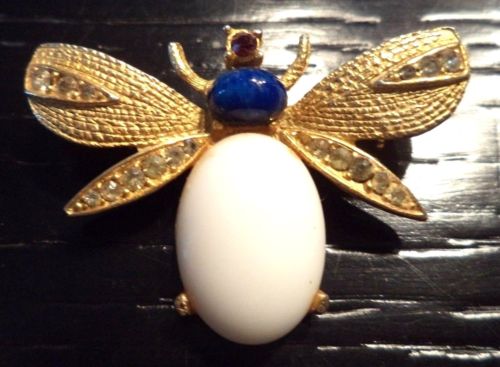 Title (ebay affiliate link): VINTAGE ESTATE MILK GLASS JELLY BELLY RHINESTONE INSECT 1 1/2" BROOCH!!! 5013L