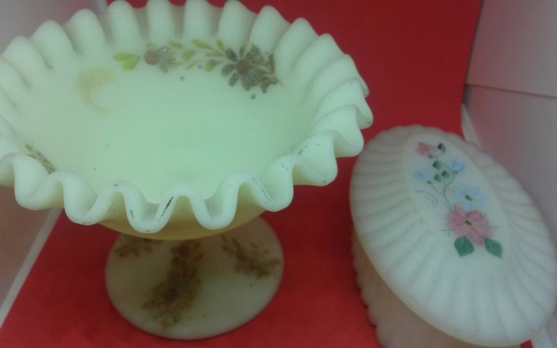 2 FENTON 4" YELLOW MILK GLASS CANDY & JEWELRY DISH