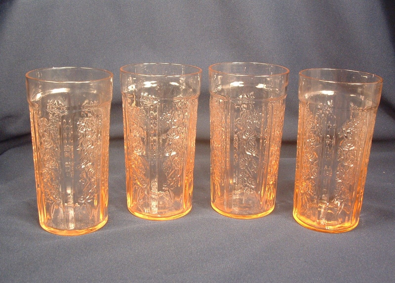 Title (ebay affiliate link): 4 Pink Depression Glass Sharon Cabbage Rose 5.25" Thin Flat Tumblers