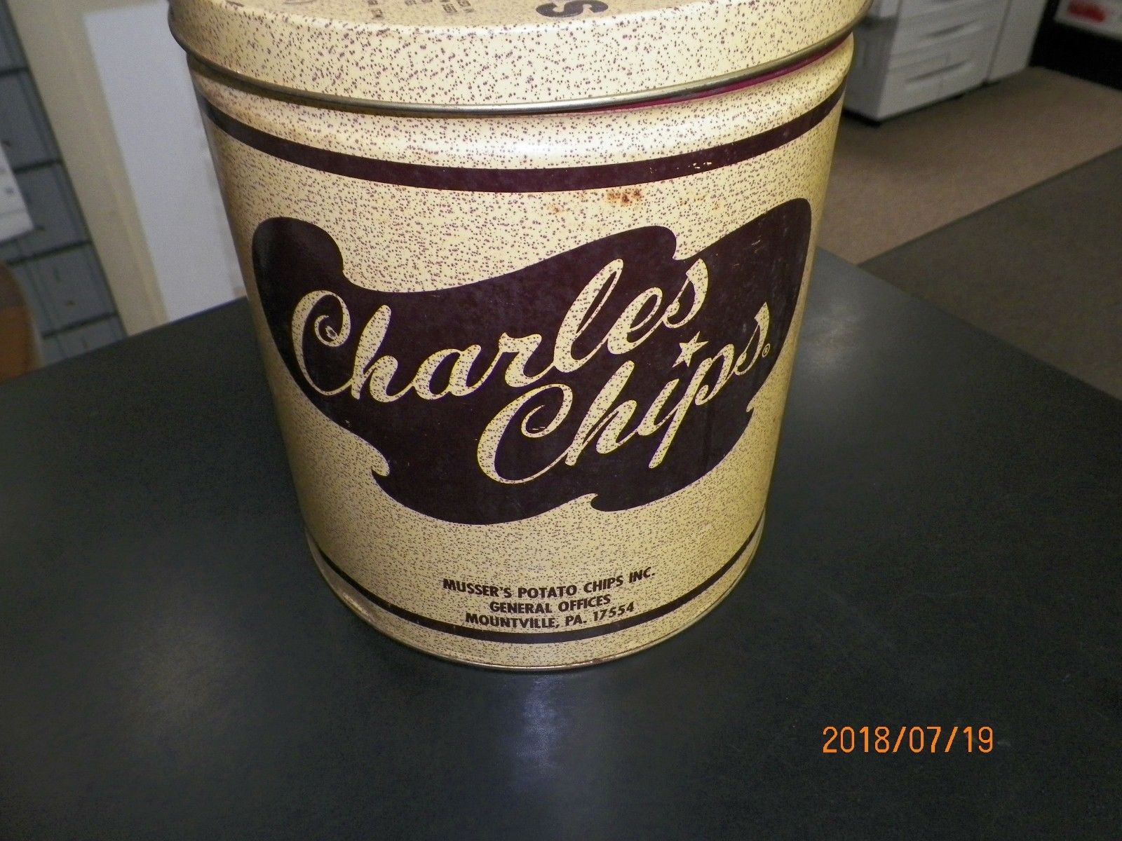 Title (ebay affiliate link): CHARLES CHIPS TIN CAN MUSSER''S POTATO CHIPS INC 9.25" x 8.25"