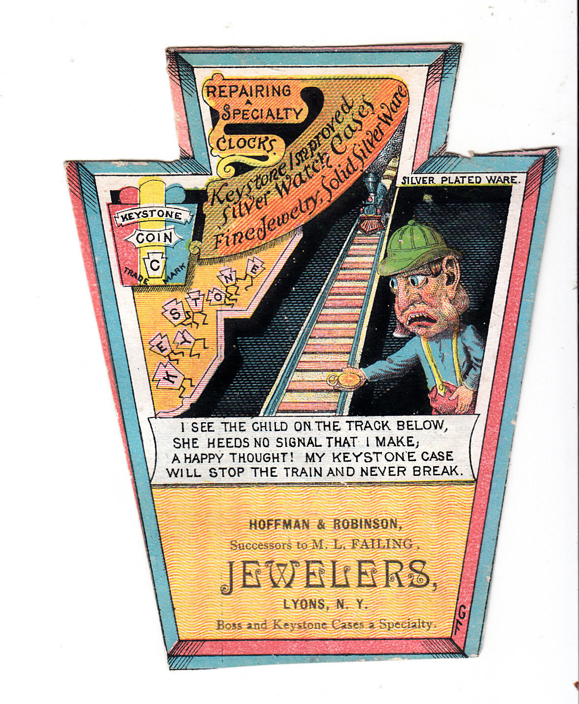 Hoffman & Robinson M L Failing Jewelers Railroad Train Man Lyons NY Card c1880s