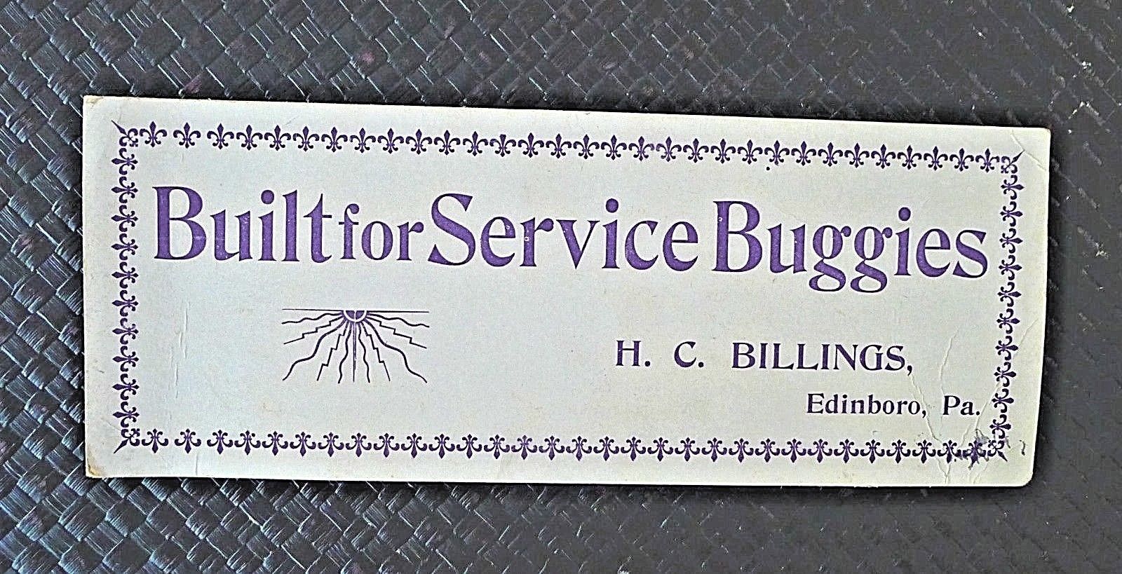 Horse BUGGY AD Advertising BUILT FOR SERVICE BUGGIES H.C. Billings Edinboro PA