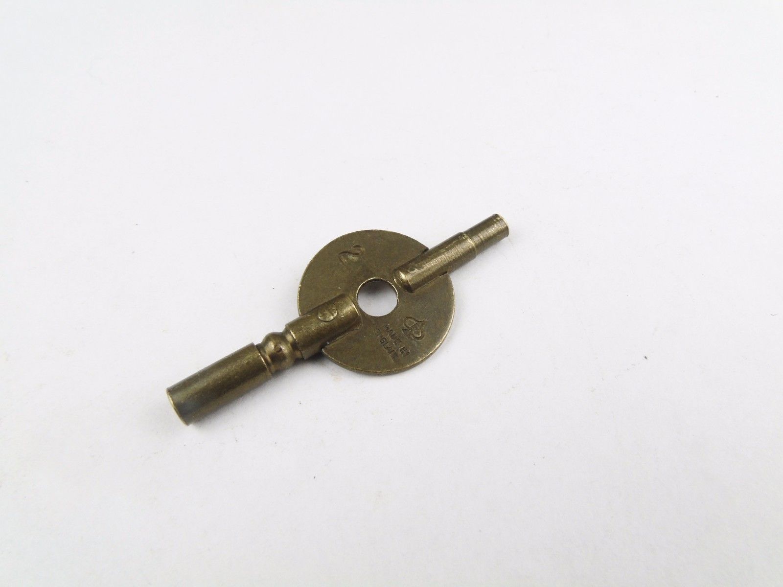ANTIQUE no 2 BRASS OLD CLOCK MANTEL CARRIAGE DOUBLE 2 SIDED KEY WINDER