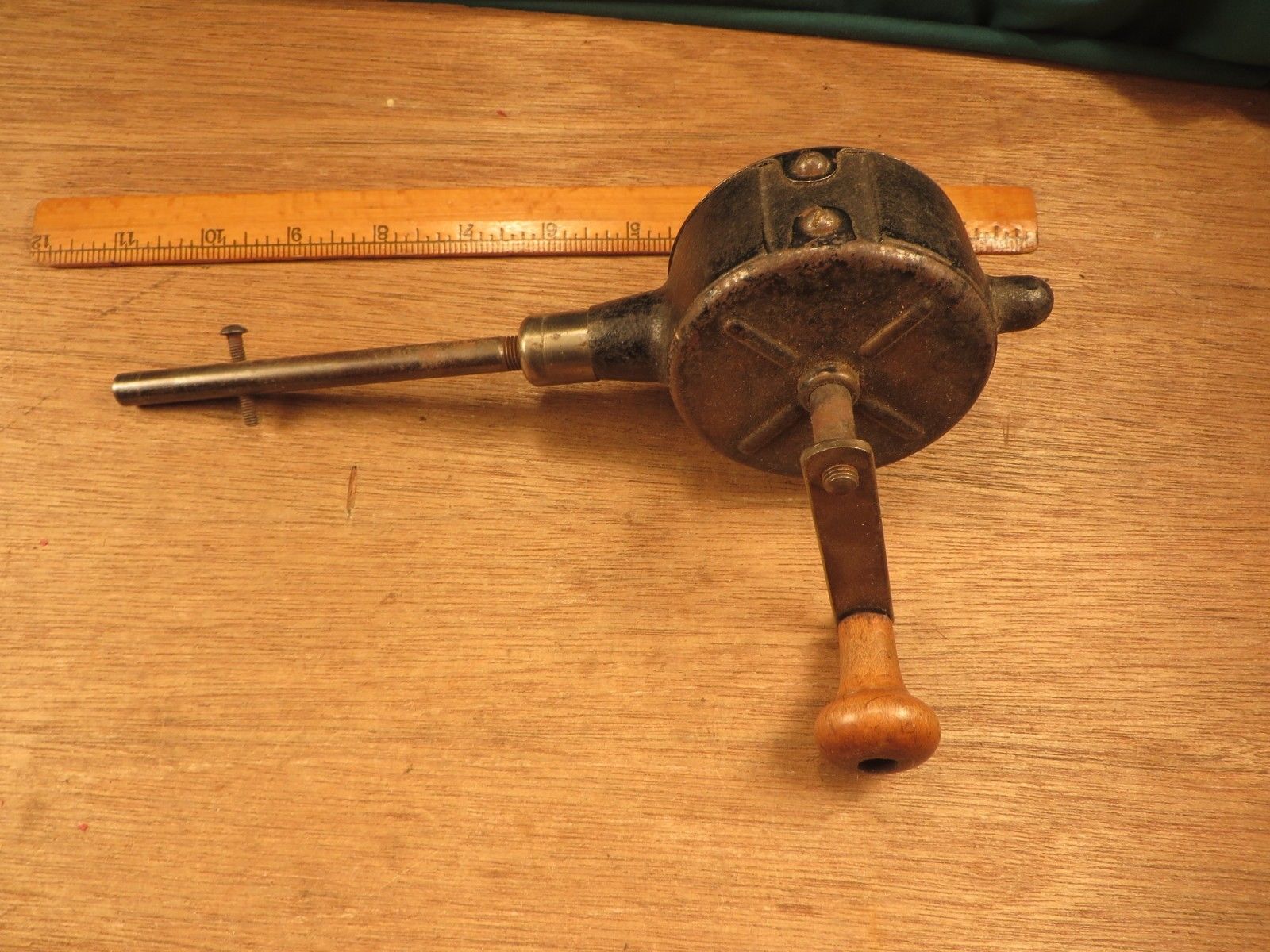 Title (ebay affiliate link): Antique Unmarked Wood Handle Cast Iron Piston Hand Crank ??? - Old Antique Tools