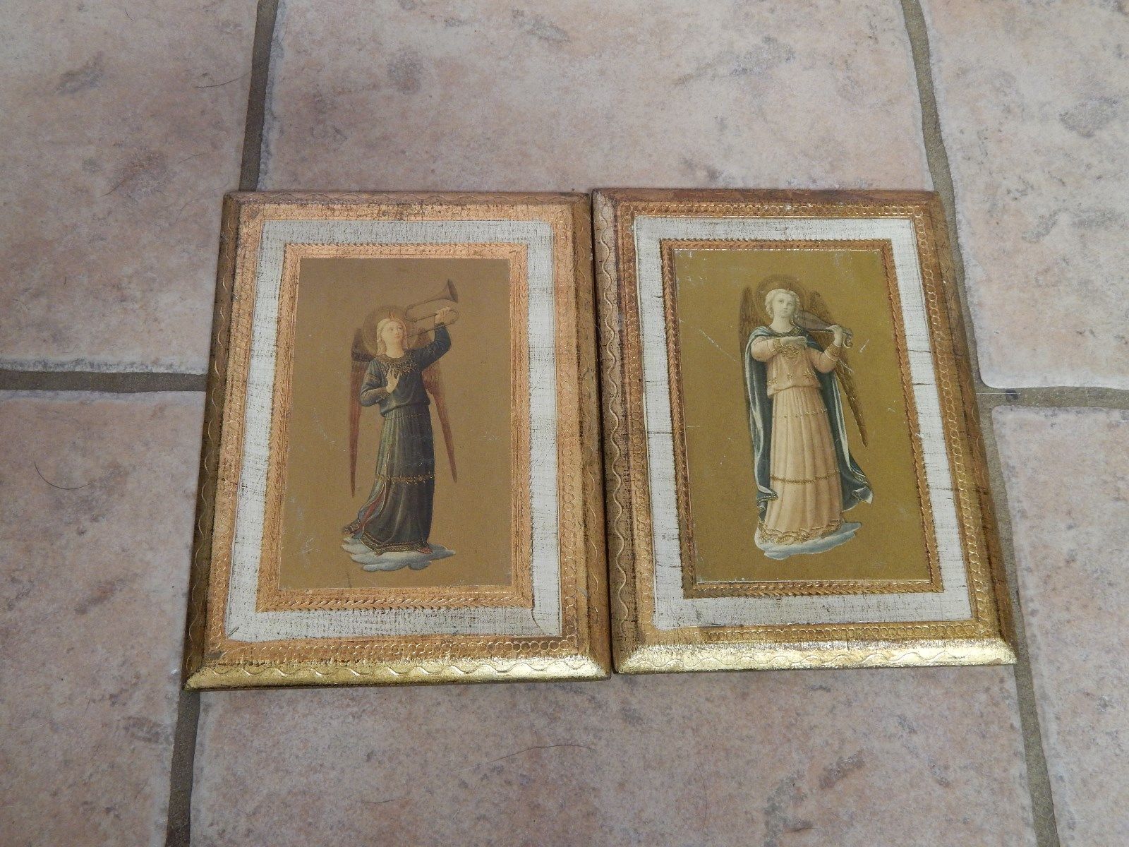 VTG ITALIAN FLORENTINE GOLD GILT ANGELS PAIR OF WALL PLAQUES