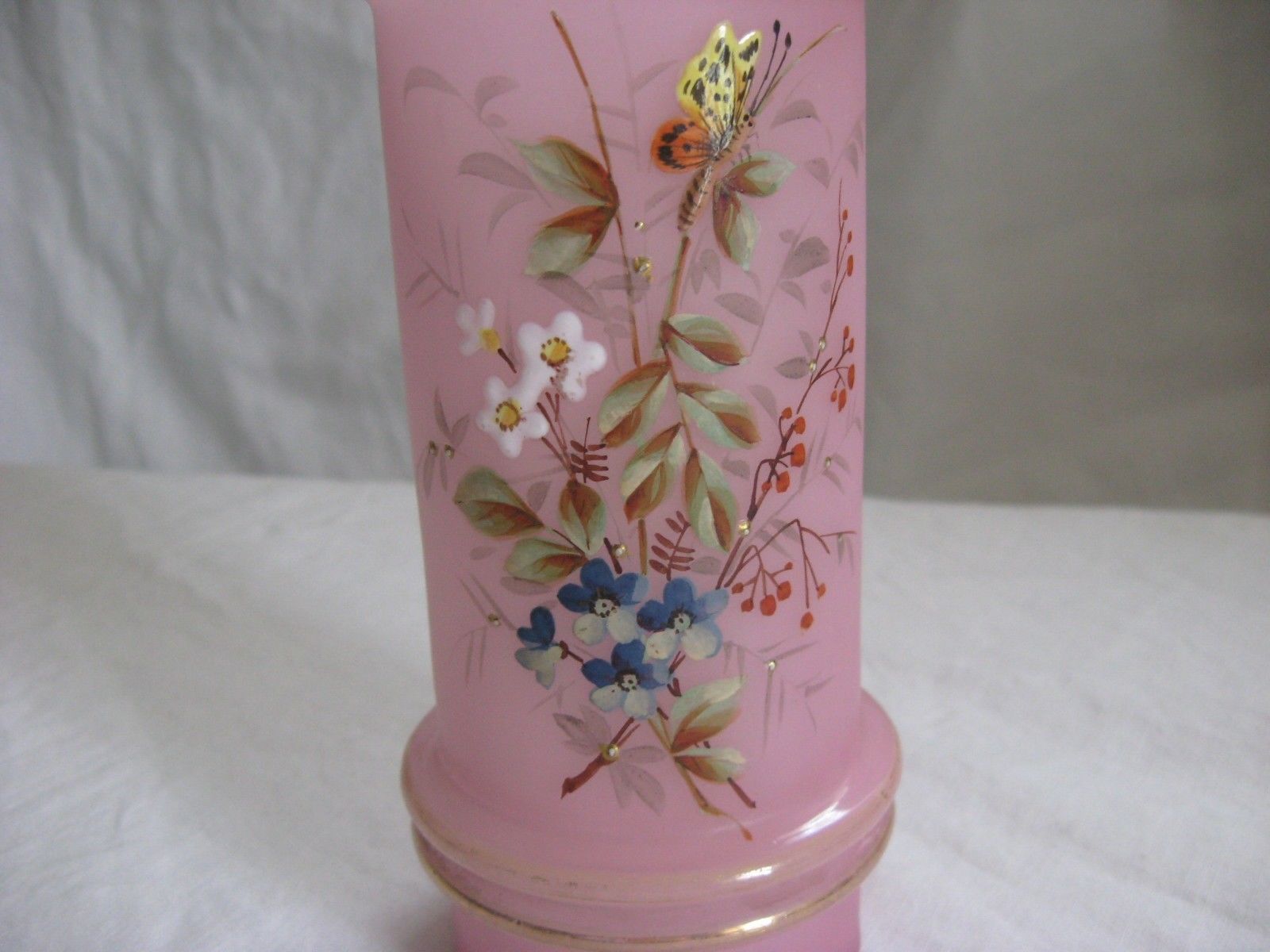 Title (ebay affiliate link): ART GLASS HAND PAINTED PINK VASE Antique Bohemian Bristol? Austrian? Czech? Gold