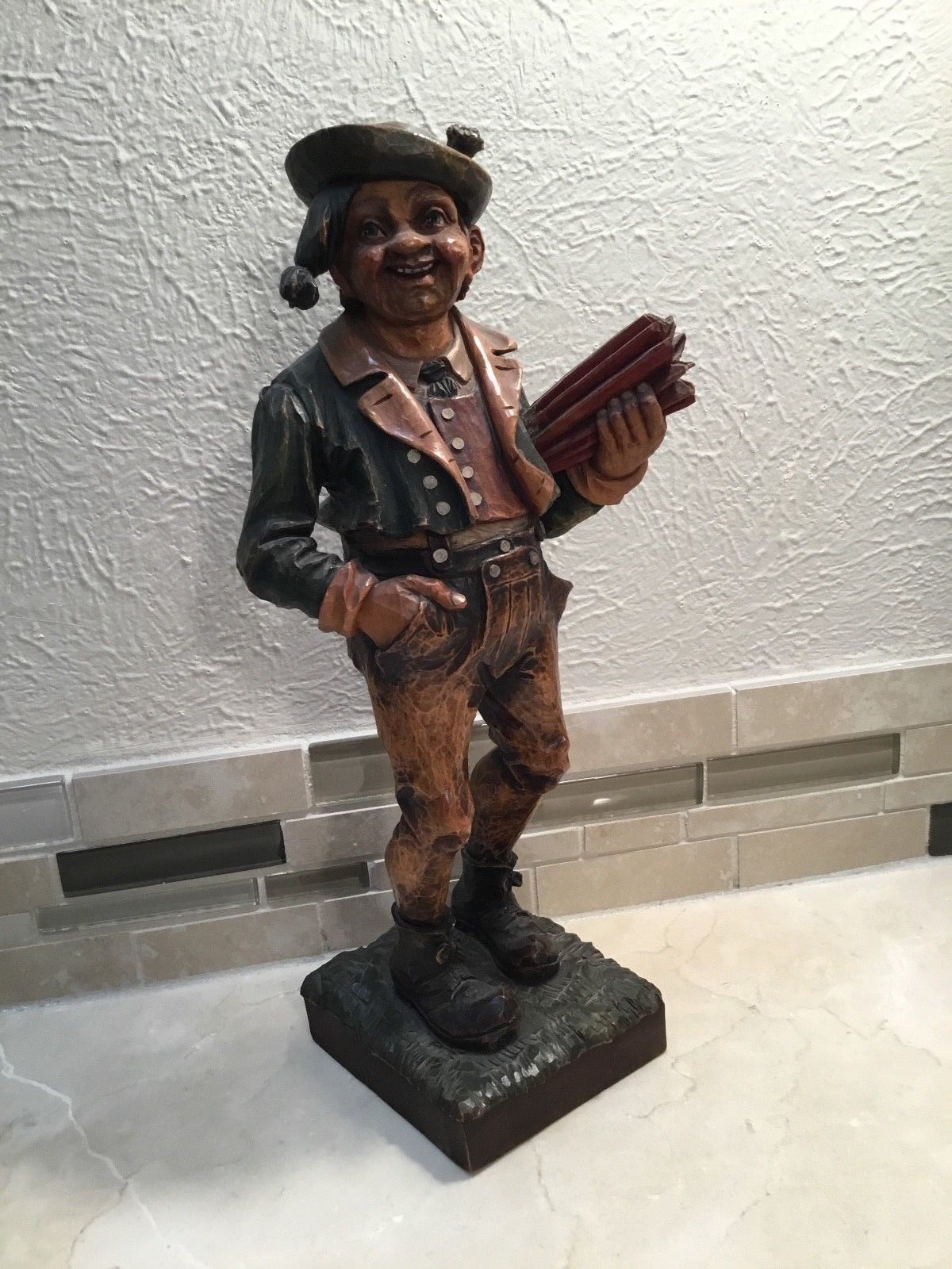 Title (ebay affiliate link): Vintage Hand Carved German Black Forest Style Figurine Man with Umbrella Carving