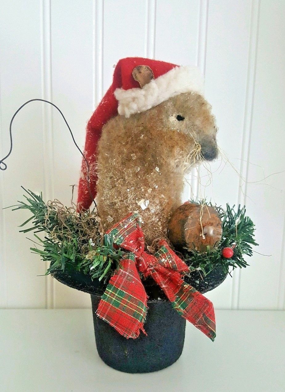 Title (ebay affiliate link): Primitive Santa Mouse top hat centerpiece Folk art Christmas mouse