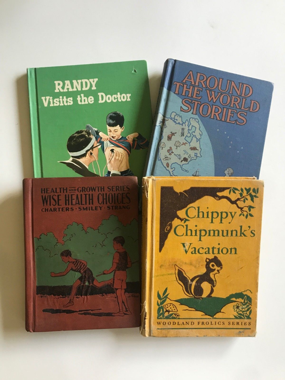 Title (ebay affiliate link): 4 Vintage 1930s 40s Antique Children''s Old School Book Primers Readers Lot