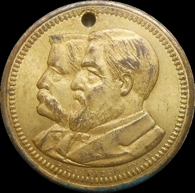 1884 REPUBLICAN U S PRES. CAMPAIGN GILT TOKEN, FOB - JAMES BLAINE & JOHN LOGAN