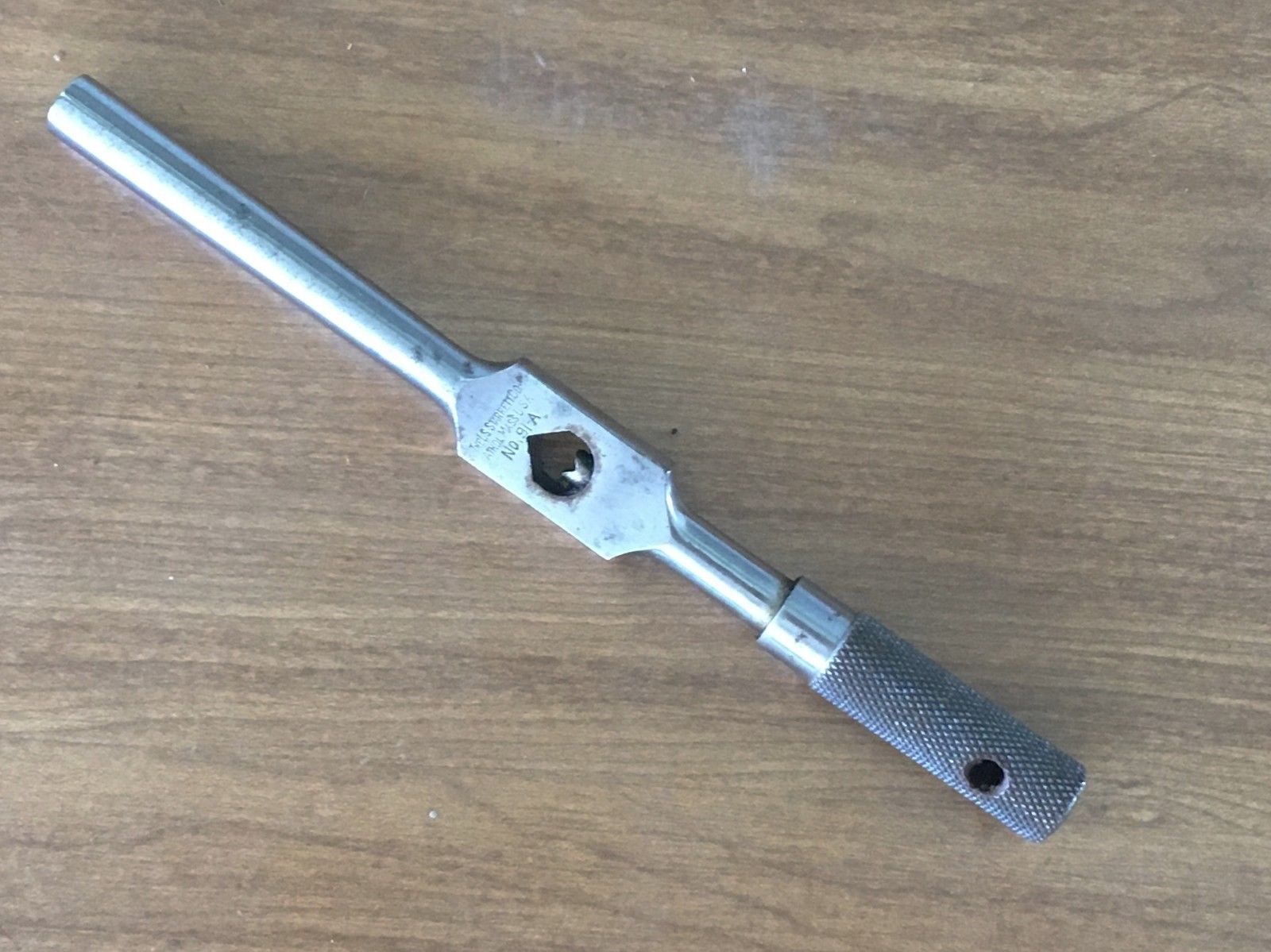 Title (ebay affiliate link): Vintage L S Starrett Co. No. 91-A Tap Wrench Handle 5 1/2" Long 1/16" to 1/4"