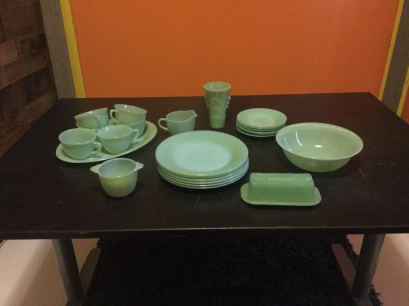 Title (ebay affiliate link): Vintage 24 Piece Jadeite Fire King/ Anchor Hocking Lot Set Jane Ray
