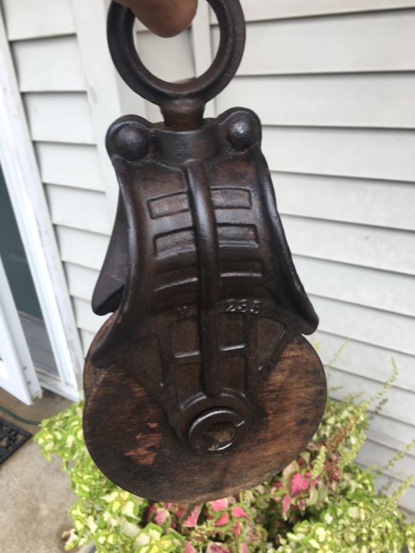 Title (ebay affiliate link): OLD USED VINTAGE ANTIQUE CAST IRON WOOD BARN HAY PULLEY PRIMITIVE FARM TOOL RARE