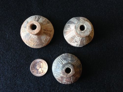 Title (ebay affiliate link): Pre-Columbian Spindle Whorls - Three (3) - Highly Decorated.