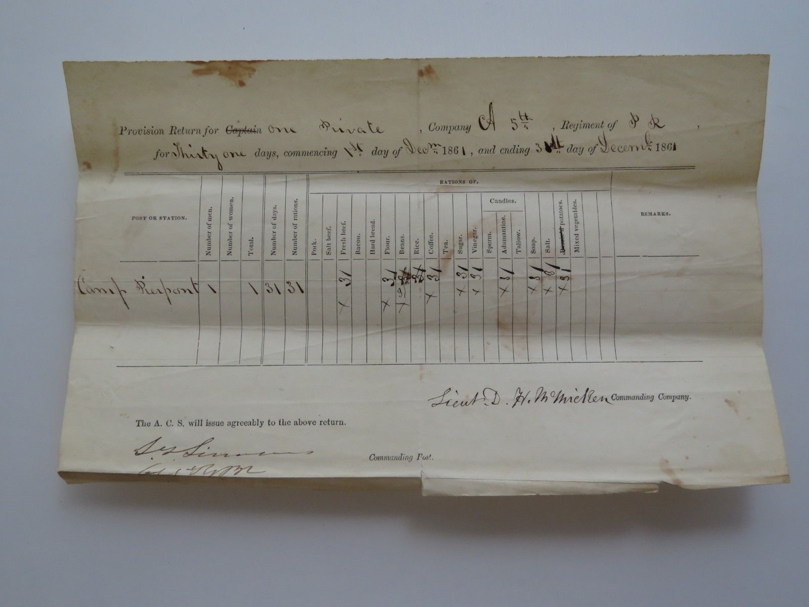 Title (ebay affiliate link): 1861 Civil War Document 5th Regiment Infantry Camp Piermont Military #9400