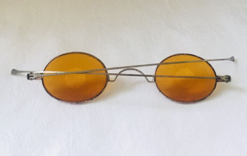 Title (ebay affiliate link): Antique Silver Tone Yellow / Amber Tinted SHOOTERS Curly Nose Eyeglasses + CASE