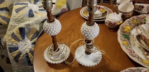 White hobnail milk glass lamps