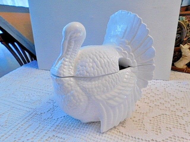 Arnart Tureen Milk White Turkey Covered Dish 8" tall