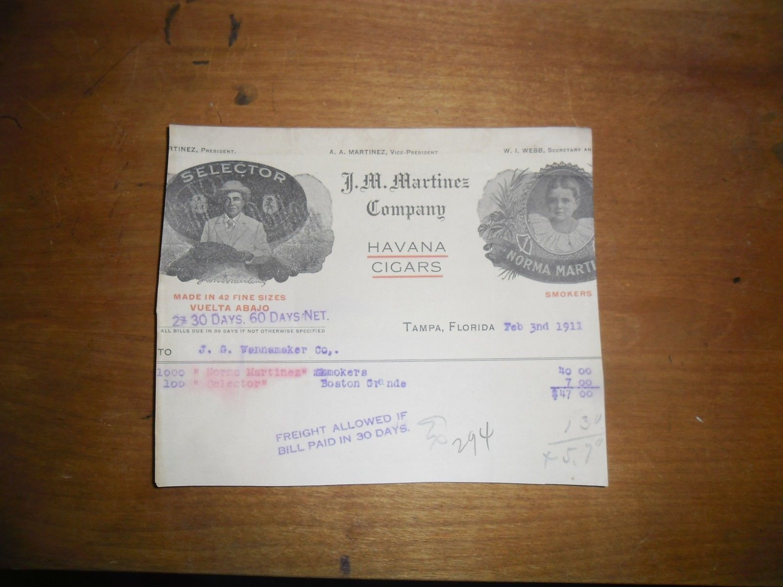 1911 Pharmaceutical Invoice HM Martinez Havana Cigars Tampa Florida Selector