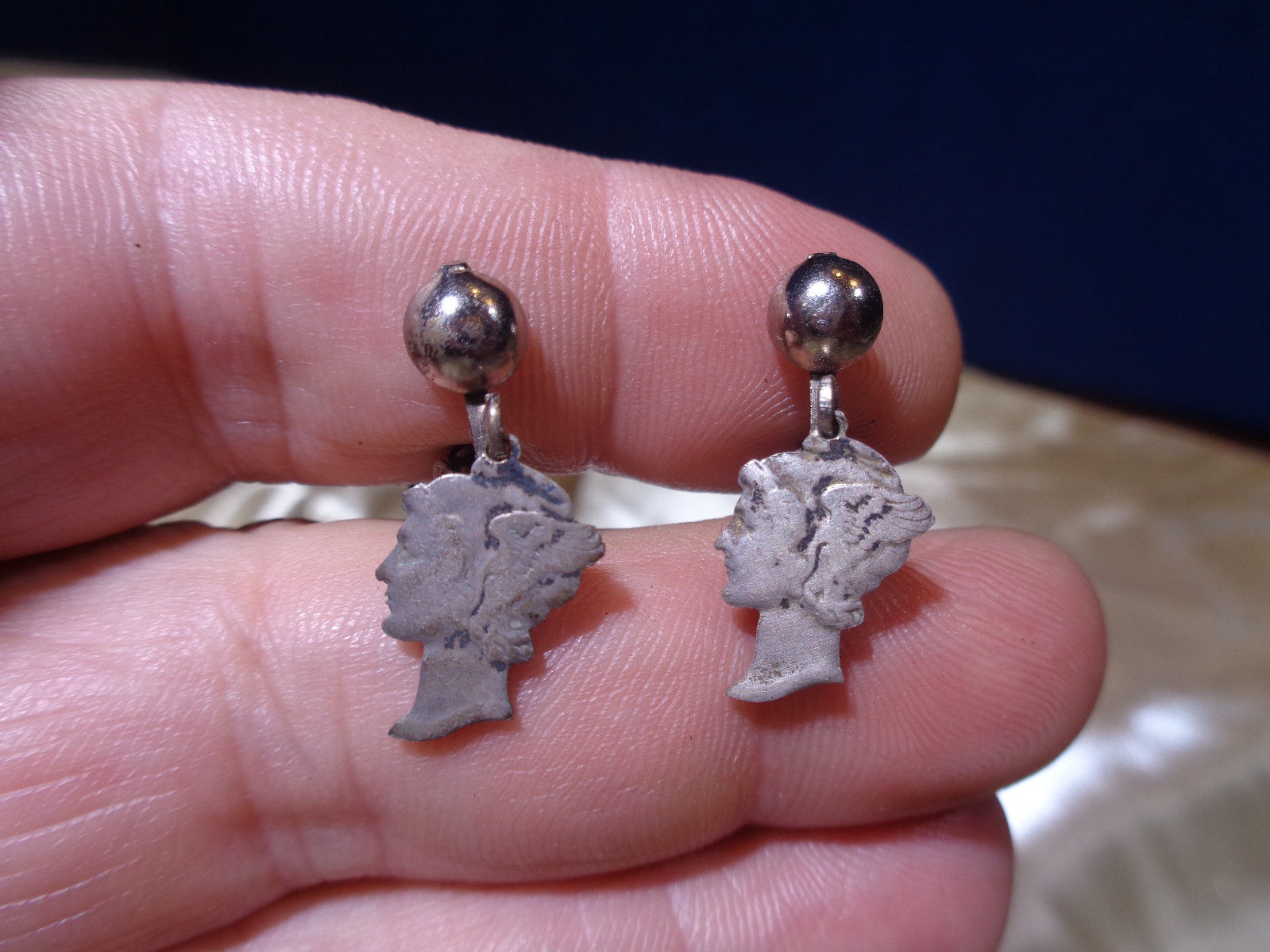~*~ ESTATE FIND ~*~ Antique Currency Earrings **MERCURY DIME** # 64